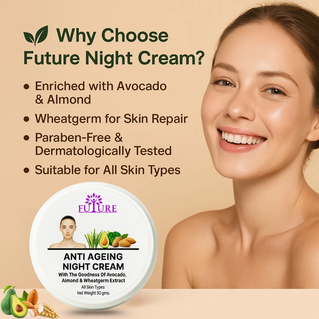 FUTURE Anti-Ageing Night Cream with Avocado, Almond & Wheatgerm Extract – 50 gm